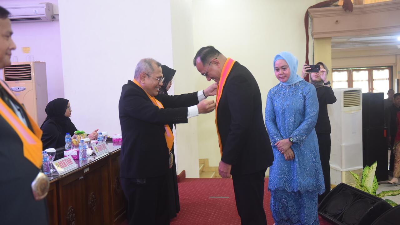 Edward dikukuhkan dalam upacara pelantikan sarjana, magister, dan doktor periode Oktober 2025 yang digelar di Graha Unsri Bukit Besar, Palembang, Selasa (14/10/2025).