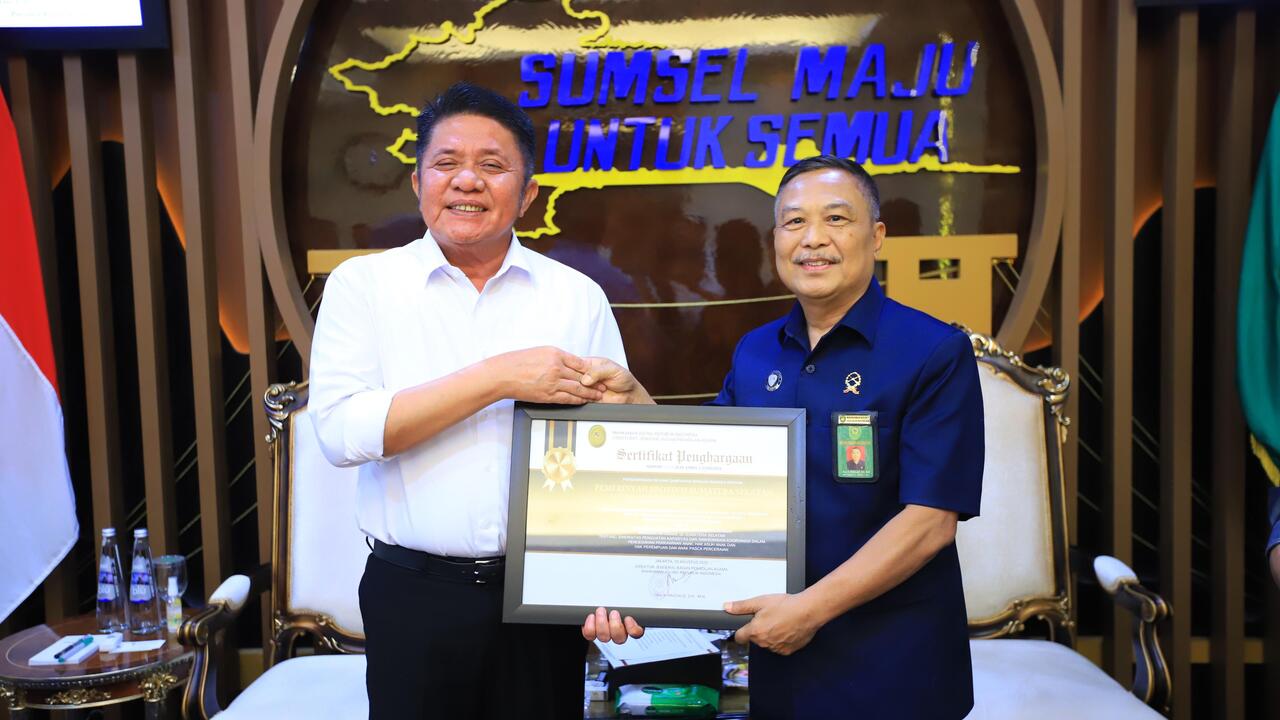 Sertifikat penghargaan itu diserahkan oleh Dirjen Badilag MA melalui Kepala Pengadilan Tinggi Agama (KPTA) Palembang, Abdullah, saat bersilaturahmi dengan Gubernur Sumsel di Kantor Gubernur, Rabu (8/10/2025) pagi.